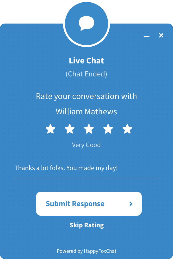 You can install HappyFox Chat on your website under a minute and make sure it matches your brand. You don't need any coding expertise to customize colors or messaging on your chat widget. You will love how quickly you can be up and running with HappyFox Chat.